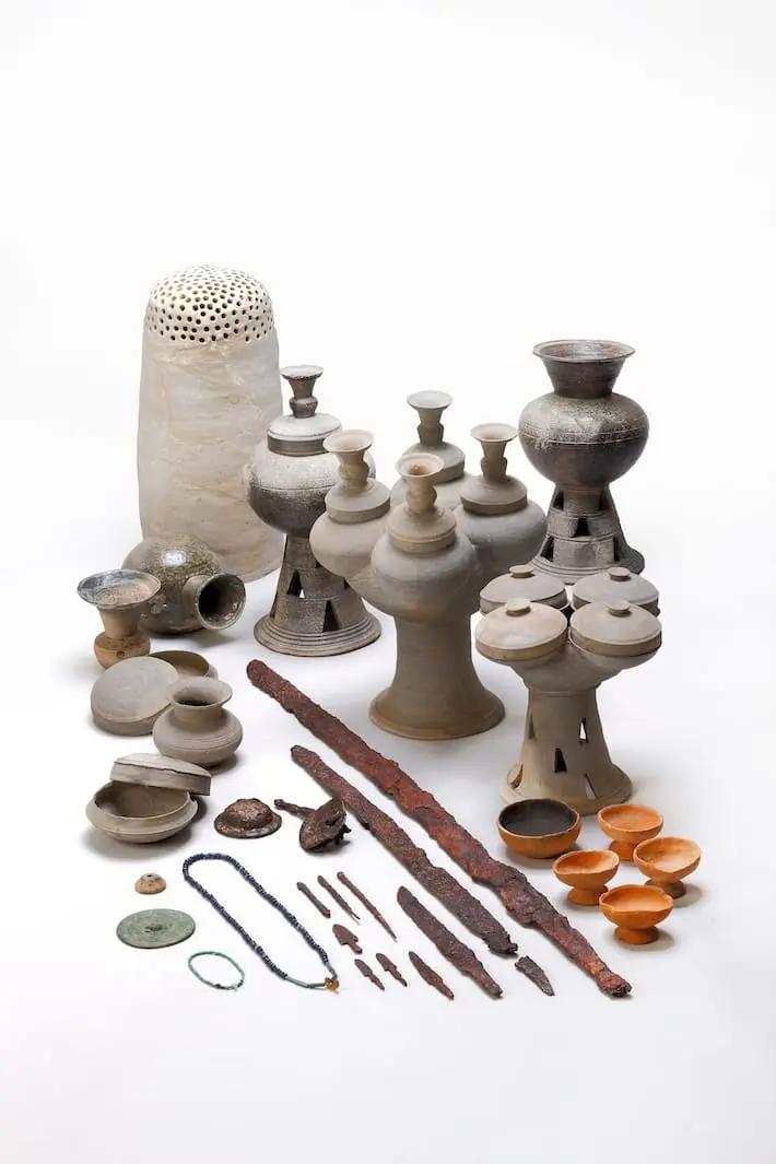 豊田大塚古墳は豊田市河合町に所在する、墳長50m前後の帆立貝式古墳で、6世紀前半に築かれました。6世紀以降の後期古墳としては西三河最大規模を誇り、装飾須恵器をはじめとして、青銅鏡や玉類など400点以上の出土品が国重要文化財に指定されています。造形豊かで洗練された装飾須恵器は、全国の須恵器の代表として、高校で使われる日本史の教科書にも掲載されています。