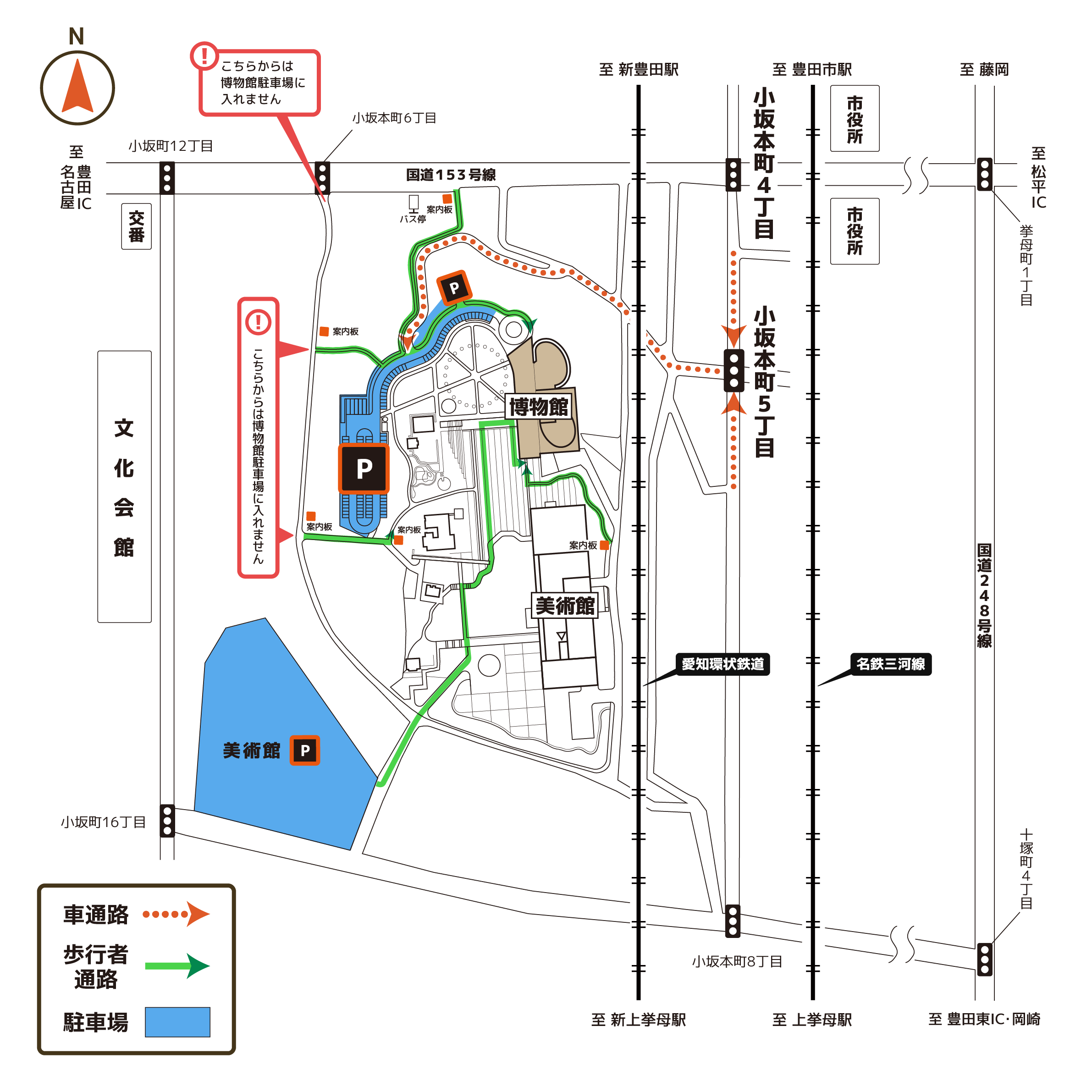 ※ 混雑時には、美術館の駐車場もご利用いただけます。美術館駐車場から博物館までは徒歩約5分