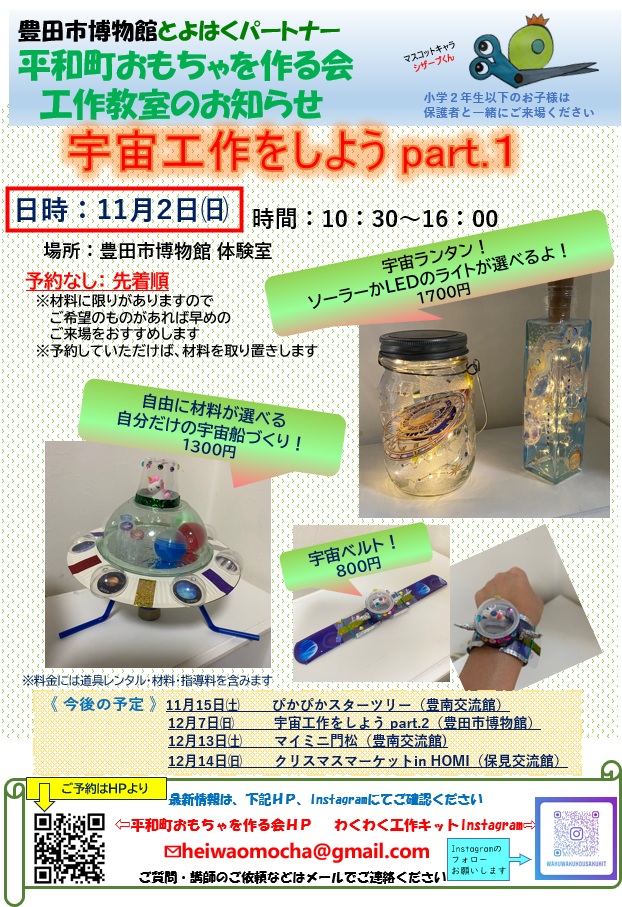 ご予約&お問合せは「平和町おもちゃを作る会」まで~。
